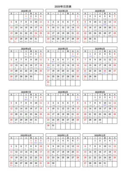 - 4、2020年属相日历表全年,(完整word版)2020年日历表(包括假期