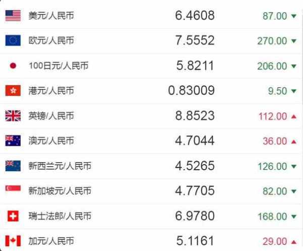 请问各国货币与人民币的兑换比率是多少?谢谢!