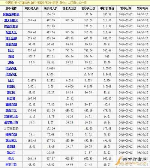 外汇牌价即外汇指定银行外汇兑换挂牌价,是各银行根据中国人民银行公布的人民币市场中间价以及国际外汇市场行情,制定的各种外币与人民币之间的买卖价格。这种外汇牌价实时变动,即使同一天牌价也有所不同。