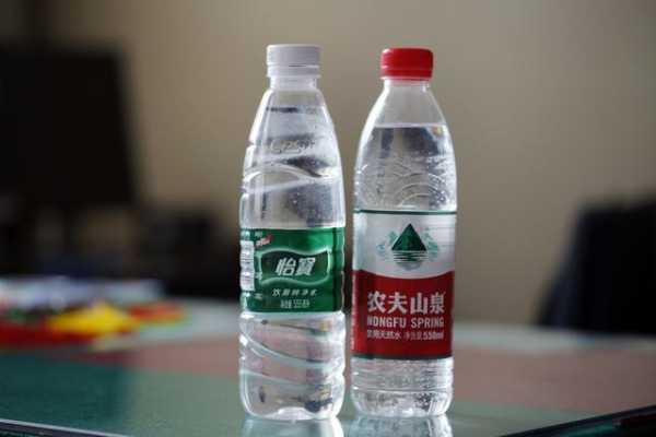>以山泉水、矿泉水和纯净水来区分,即农夫山泉和怡宝都是以山泉水为原料制成的瓶装饮用水。根据两个的官方数据,农夫山泉的PH值为7.8-8.2,总硬度为110mg/L,而怡宝的PH值为7.8-8.2,总硬度为170mg/L,因此怡宝的碱性略高于农夫山泉。