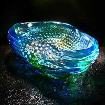 一般琉璃原料或机械压模的量产制品因在1400~1300℃高温烧制,琉璃在液状态下,内含的空气已浮出表面,所以少有或无气泡产生。但多数铸造的琉璃艺术品多以850℃低温烧制,热玻璃膏流动缓慢,玻璃块之间的空 气,因无法浮出表面而自然形成气泡,艺术家们多以气泡表现琉璃的生命质感,并成为欣赏琉璃艺术的一部份。