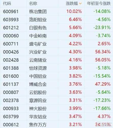从具品种涉及的相关A生产企业看, 领域有:包钢(600111)、广晟有色(600259)、厦门钨业(600549)、中色份(000758); 钨方面有:厦门钨业、章源钨业(002378)、广晟有色; 锑方面有:辰州矿业(002155); 钼方面有:金钼份(601958)、厦门钨业、紫金矿业; 锡方面有:锡业份(000960); 铟方面有:ST珠峰、株冶集团(600961); 锗方面有:云南锗业(002428)、驰宏锌锗(600497); 镓方面有:南风化工(000737)、中金岭南(000060); 钽方面有:东方钽业(000962);