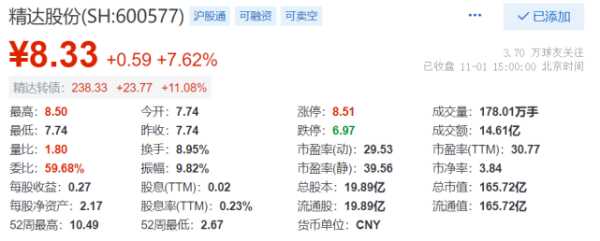 >我看了一下DR精达份的公告10送1转9派1。