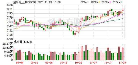 截止4月21日收盘,金杯电工 (002533) 收盘价7.65元,收盘跌1.92%,略有震荡。 成交1.88亿,有望明天开盘上涨3个点,信我着有不信着无。
