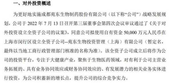 成都苑东生物制药份有限公司是一家集化原料药与制剂及生物制剂研发、生产、销售于一的高新技术企业,公司成立于2009年,下设5家全资子公司,现有员工近千人。公司于2020年9月在上海证券交易所科创板上市(票简称:苑东生物,票代码:688513)。