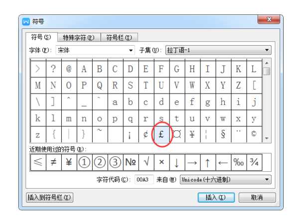 3.点击英镑符号按钮进行符号。