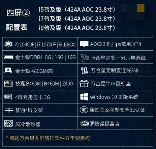 >1. 主板:CPU型号要求至少是Intel系列,推荐Intel Core i5或更高版本,用于多屏显示的显卡应采用双显卡方案,可以支持6至8个屏幕的显示;