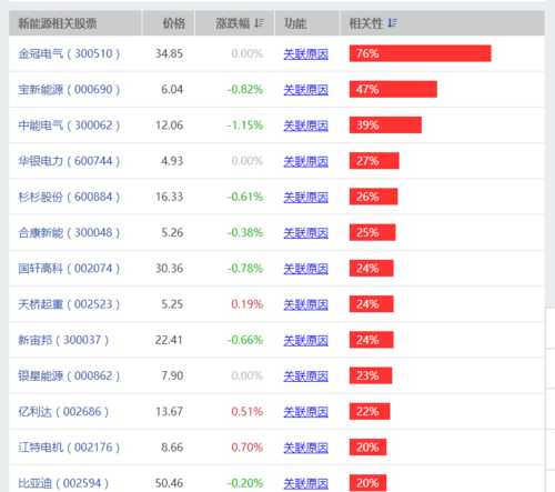 涉及到新能源的票有哪些?