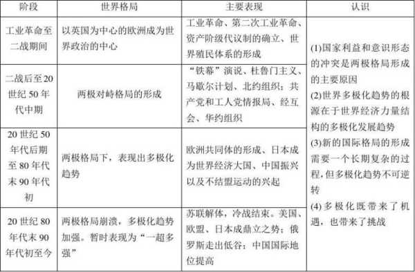 2.各种力量的对比变化.充当主角的力量消长和对比状况的变化决定着世界格局的变化.格局的形成是建立在实力基础上的,其中的是经济实力。
