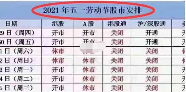 (三)劳动节:4月29日(星期六)至5月1日(星期一)休市,5月2日(星期二)起照常开市。