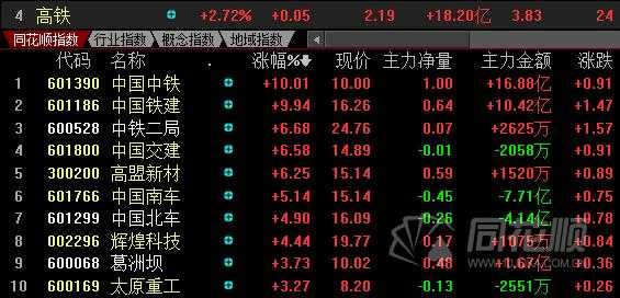 1、上游原料环节:工程机械、桥梁及隧道钢铁﹑水泥﹑电力、建筑材料企业将直接受益。中铁、铁建(601186)、中铁二局(600528)、隧道份(600820)、徐工机械(000425)、三一重工(600031)等。