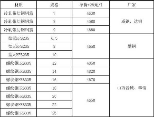 1、螺纹钢Φ12mmHRB400执行2875元/吨,螺纹钢Φ14mmHRB400执行2855元/吨,Φ16-25mmHRB400执行2825元/吨;