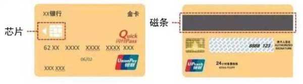 磁卡是指背面有一条黑色的磁条卡。芯片卡是指正面可以看到有一块金属芯片的卡。银行磁条卡和芯片卡区别: