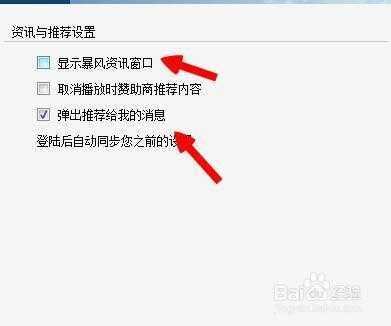 >>>>5、开资讯与推荐之后,把“显示暴风资讯窗口”前面的勾给去掉,然后点击底下的“应用”和“确定”,就完成了所有的作步骤了,当开暴风影音的时候,就不会开暴风资讯窗口了。