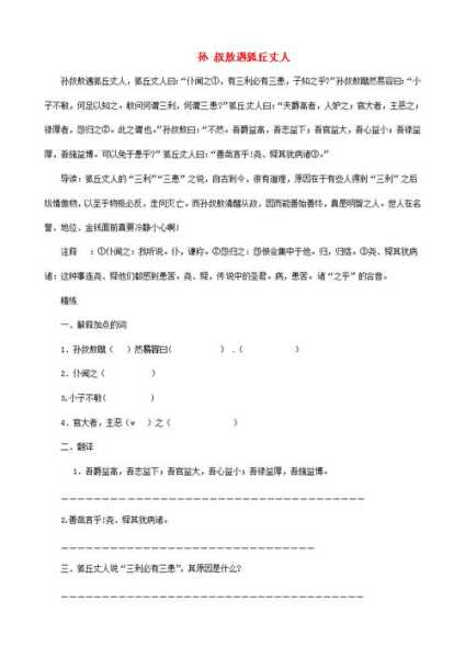 孙叔敖遇狐丘丈人中 三利必有三患的原因是:爵位高的,人们会嫉妒他;官大的,君主会厌恶他;俸禄厚的,怨恨会集中于他.这就是三利三害.【原文】孙叔敖遇狐丘丈人.狐丘丈人曰:“仆闻之:有三利,必有三患,子知之乎?”