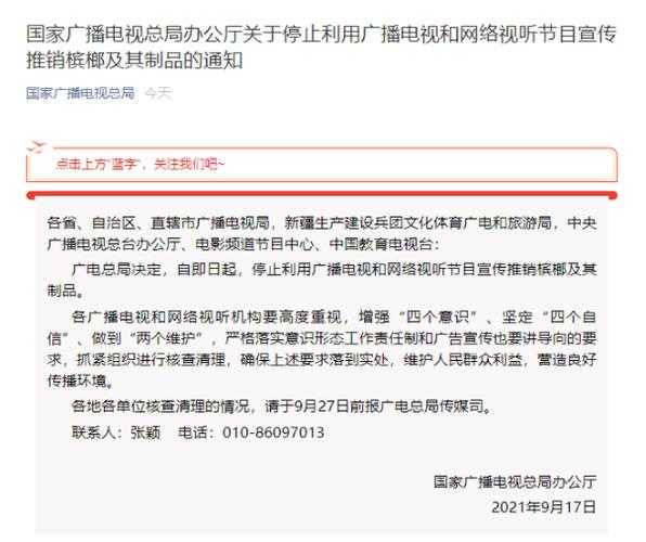 10月12日发通知要求,影视剧片片尾禁止插播广告,中间插播广告需时长。时政类节目禁止使用企业或商品冠名,主持人不得代言商业广告。