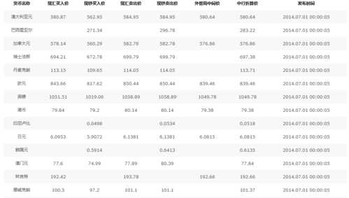 每个银行有对应的牌价。下面为某银行美元的,卖出价/买入价都是相对银行。