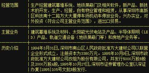 方大集团份有限公司(A代码:000055;B代码:200055)1991年12月28日创立于的——深圳蛇口,公司票1995年11月29日在深圳证券交易所上市,是国内首批A、B票上市的民营企业。方大集团业务范围涵盖智慧幕墙及新材料、轨道交通门设备及、新能源、总部基地等板块,旗下现有7家高新技术企业,在建有多家生产基地,业务遍及120多个和地区,是集研发、生产、销售及服务为一的综合性企业。