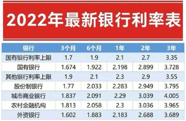 银行存款利率2022?