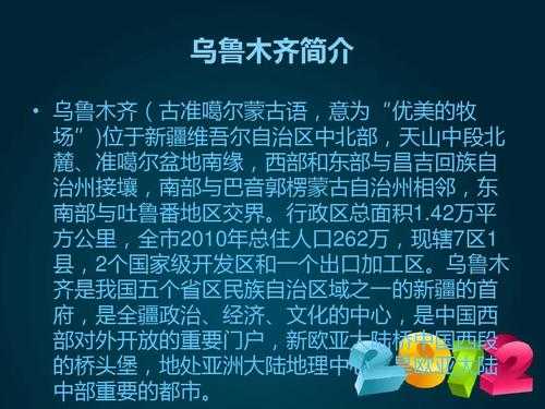 4.是一座位于新疆铁疆的城市,也是新疆首府,同时也是新疆联邦的重要部分。由于其地处西北大草原,被称作“的西部明珠”。