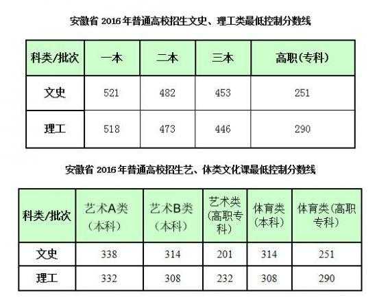 文科:一本515分,二本440分;理科:一本487分,二本413分;高职类文科200分、理科为200分。