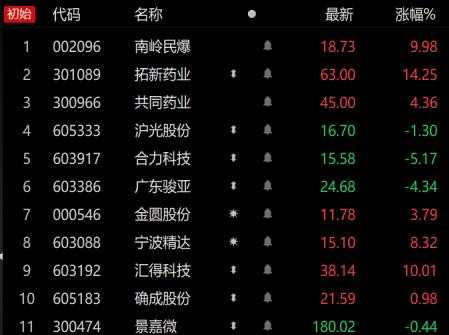 久联发展(002037) 南岭民爆(002096) 雷鸣科化(600985) 江南化工(002226) 北化份(002246) 兴化份(002109) 雅化集团(002497) 同德化工(002360)