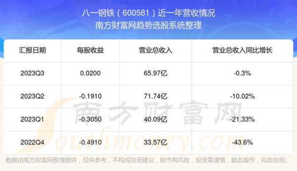 不太好。根据八一钢铁公司公布的2022年年报数据显示:2022年实现营业收入230.4亿元,同比下降25.3%;实现利润13.67亿元,大幅下降215.73%。预计今年一季度亏损。