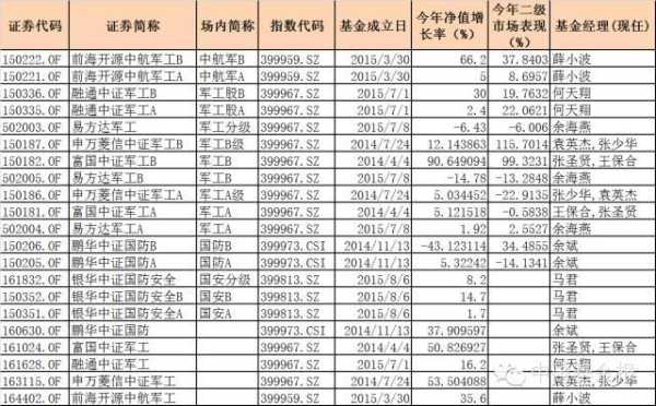 指数型基金申万菱信中证军工鹏华中证国防富国中证军工前海开源中航军工主动型基金长盛航天海工装备、长盛装备制造
