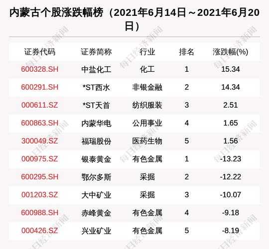 市值方面,境内上市公司市值比较靠前的企业有:伊利份(600887.SH)、包钢份(600010.SH)、北方(600111.SH)、君正集团(601216.SH)、银泰资源(000975.SZ)、生物份(600201.SH)、内蒙一机(600967.SH)、亿利洁能(600277.SH)、内蒙华电(600863.SH)、西水份(600291.SH)等。