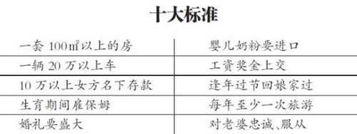 在日本,从前就有一些人说要「三高男」:年薪高、历高和身高要高。但后来因为日本经济低迷,又说女人在追求三低男:低姿态、低风险、低。总之,不要有什么梦想,凡凡过完一生,也是好事。未来丈母娘择婿八个条件?