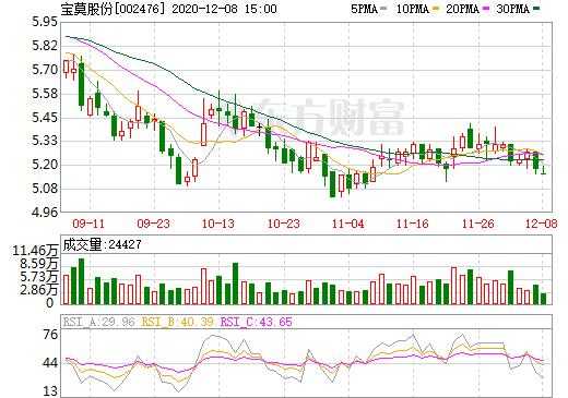 1、宝莫份(票代码为002476)目前已经复牌了,的价为11.04元。