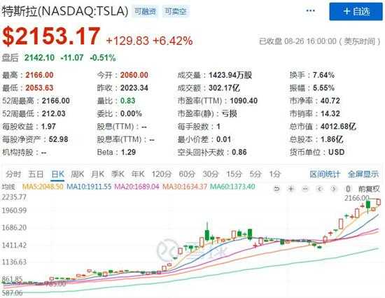 自那以后,特斯拉的价下跌了12%以上。