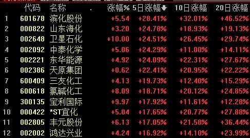 烧碱:002092中泰化、000422湖北宜化、600618氯碱化工