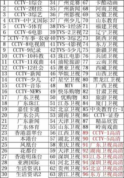 广东广电电道目录?