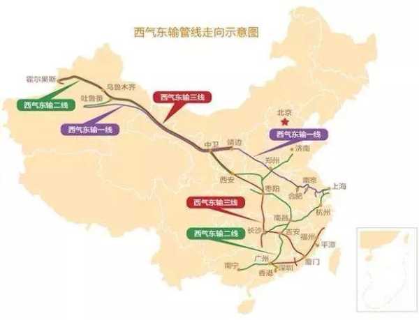 石油规划计划部有关负责人介绍说,西气东输二线管道西起新疆的霍尔果斯,经西安、南昌,南下广州,东至上海,途经新疆、甘肃、宁夏、陕西、河南、安徽、湖北、湖南、江西、广西、广东、浙江和上海13个省(区、市)。干线全长4859千米,加上若干条支线,管道总长度超过7000千米。