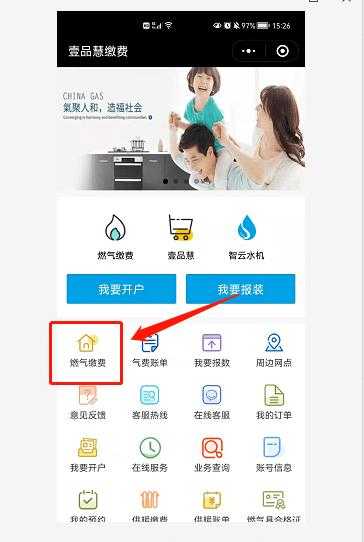 用缴费。首先登录 选择导航栏上面的缴费 看看是否添加了缴费功能 选择自己缴费城市 下面有交水费 电费 我们选择缴燃气费 选择自己缴费单位和输入自己的户号,单子上有的 接下来按着提示走即可