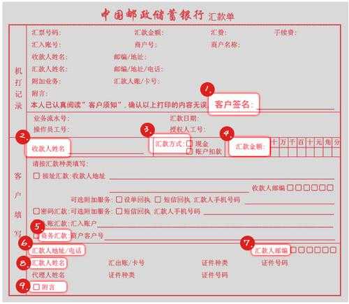>2、按步骤正确填写一张红色的汇款单,将对方的账号、户名以及您个人的姓名电话留好。