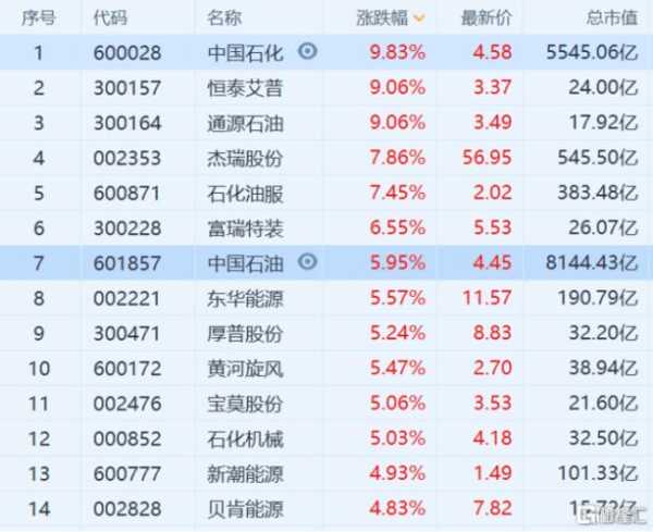 纯A: 石油大明(000406) 凤凰(000520) 泰山石油(000554) 武汉石油(000668) 石炼化(000783) 扬子石化(000866) 中原油气(000956) 齐鲁石化(600002) 鲁润份(600157) 有H又有A: 仪征化纤(600871.SH 1033.HK) 上海石化(6000688.SH 0338.HK) 纯H: 燕化(0325.HK)(已私有化) 镇海炼油(1128.HK) 中石化冠德(0934.HK)