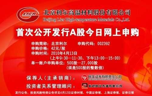 公司全称是利尔高温材料份有限公司,位于,成立于2000年11月8日,从事材料行业,于2010年4月23日在深圳证券交易所上市,证券类别是深交所主板A,上市票代码为sz002392。