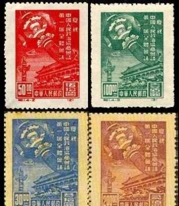 是“庆祝协商公议届全会议”这套邮票发行于1949年10月8日,这套邮票共四枚,为新诞生的之套纪念邮票。有看重大的历史意义。