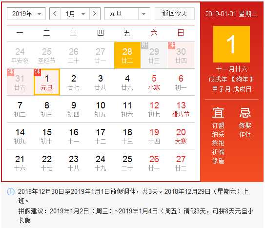 2019元旦假期安排表什么时候出?