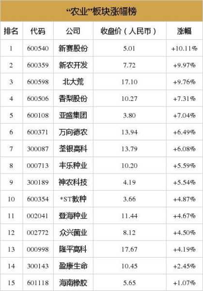 票当中,农业有哪些?