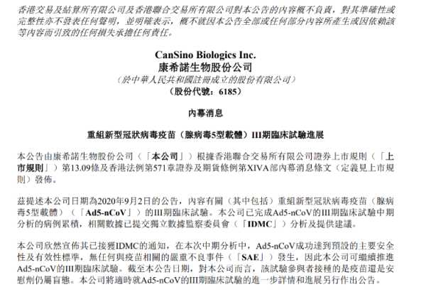 康希诺生物份公司(简称:康希诺生物,票代码688185.SH,6185.HK)于2009年注册于天津滨海新区,是由跨国制药企业高层管理者国创立的、致力于人用研发、生产和商业化的中外合资企业。