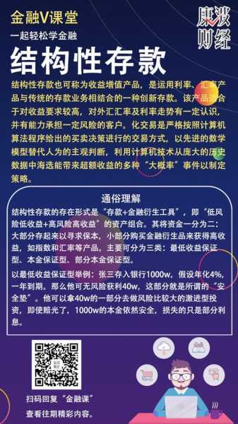 结构性存款也是存款的一种,这种存款基本上和外汇挂勾,如美元欧等,结构性存款利率比一般存性存款利率高但是稳健程度也比一般存款差点