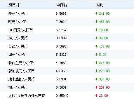 以上汇率数据是按以下汇率计算的: