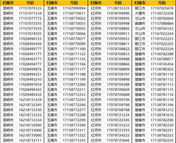 目前,各大号段使用情况如下: