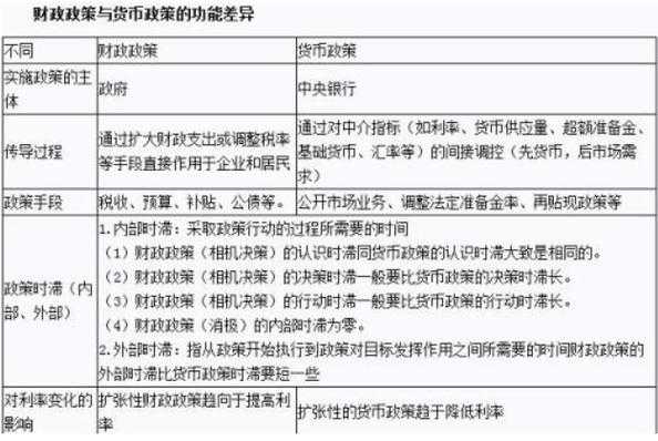 货币政策和财政政策作为需求管理的两大政策,其运作就是通过增加或者减少货币供给来调节总需求。就调节货币供给这个角度来说,它们的区别在于货币政策是通过银行,运用金融工具,由金融传导机制使之生效;而财政政策则是通过财政,运用财税工具,又财政传导机制使之生效。