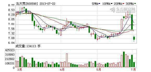 >4、北大荒(600598):该公司主要经营业务为耕地的承包经营;油料、豆类、谷物等作物的种植、加工以及销售。截至2021年7月6日,该公司总市值为266.47亿。