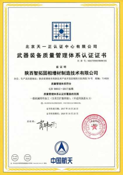 (一)装备质量系认证(证书有效期4年)
