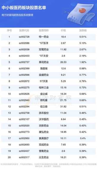 医药板块前十的票?